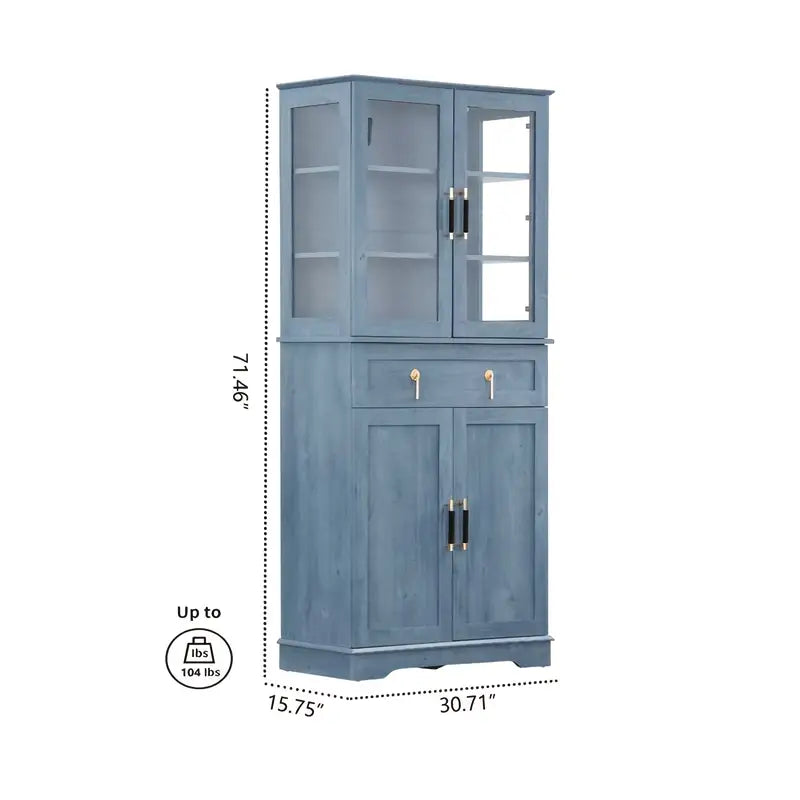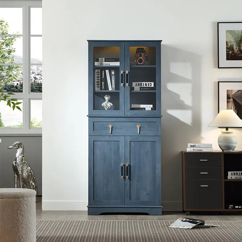 A built-in drawer adds extra space for utensils or small items, making it ideal for dining rooms and kitchens. Finished in a sophisticated blue, this cabinet enhances your space while keeping essentials neatly accessible.