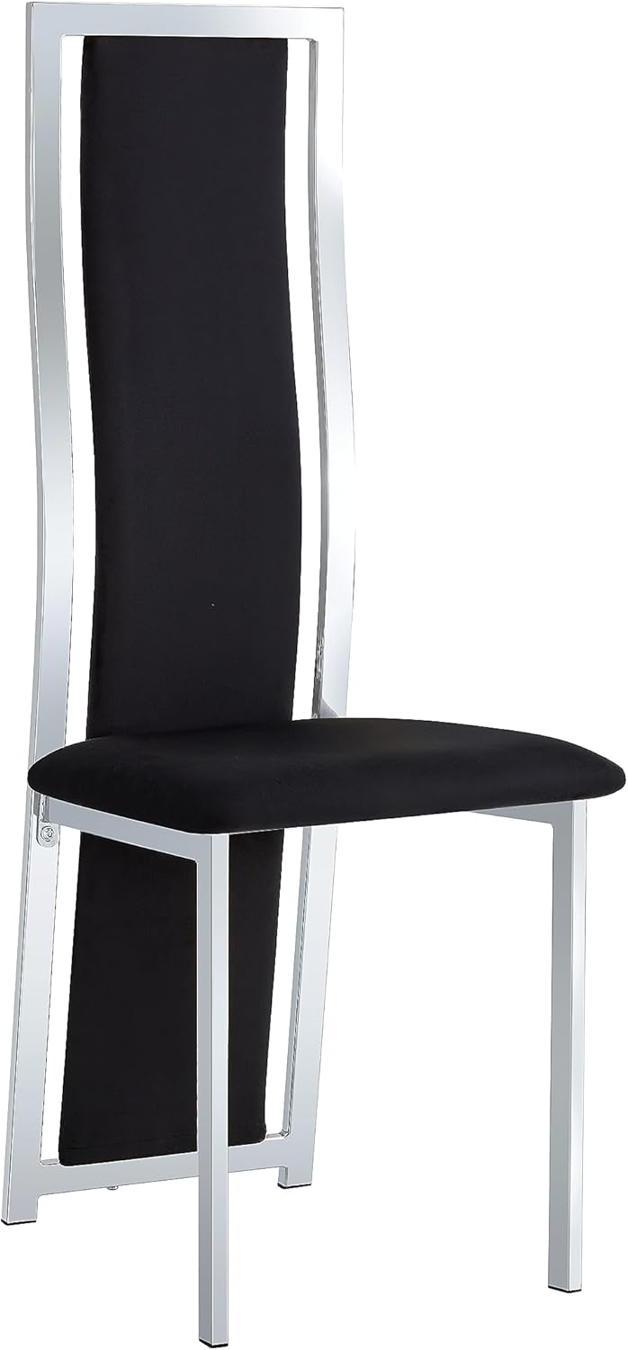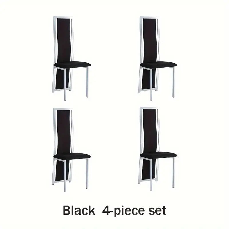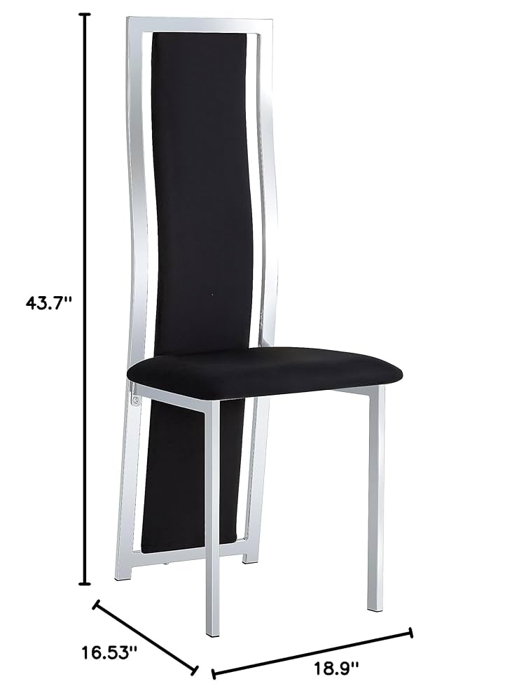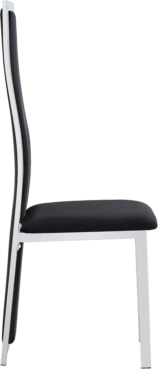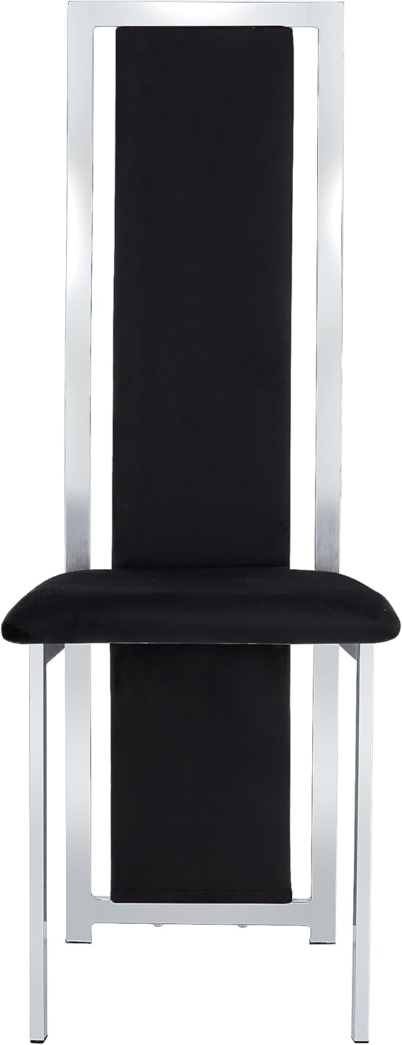 Experience the perfect balance of comfort and sophistication. This high-back dining chair set features plush black cushioning wrapped in premium upholstery, supported by striking silver metal legs. Non-slip feet ensure stability without compromising style.