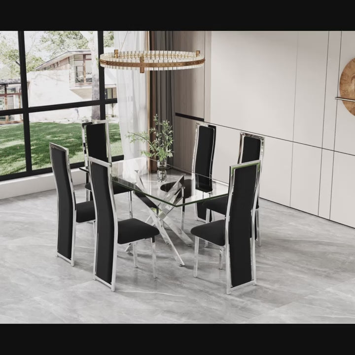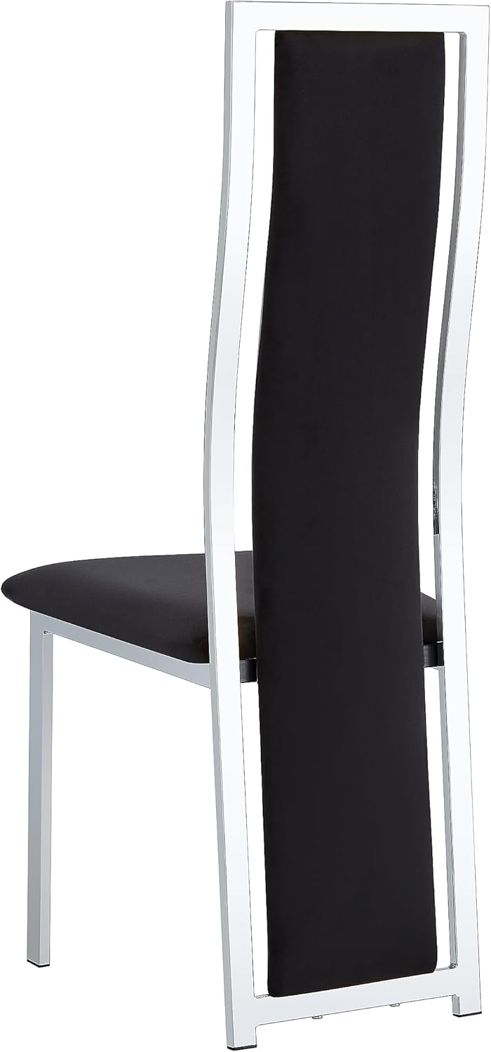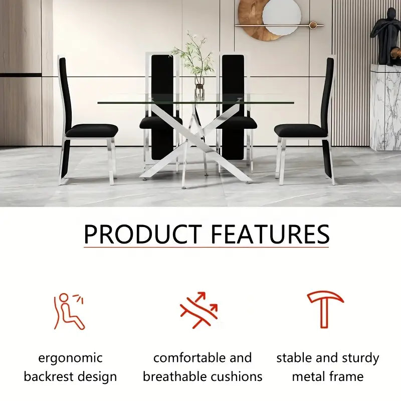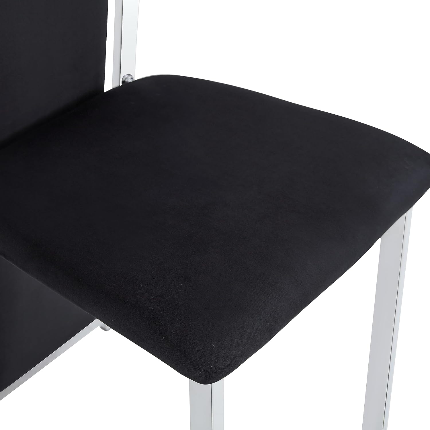 Experience the perfect balance of comfort and sophistication. This high-back dining chair set features plush black cushioning wrapped in premium upholstery, supported by striking silver metal legs. Non-slip feet ensure stability without compromising style.
