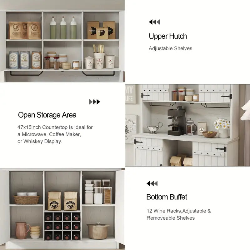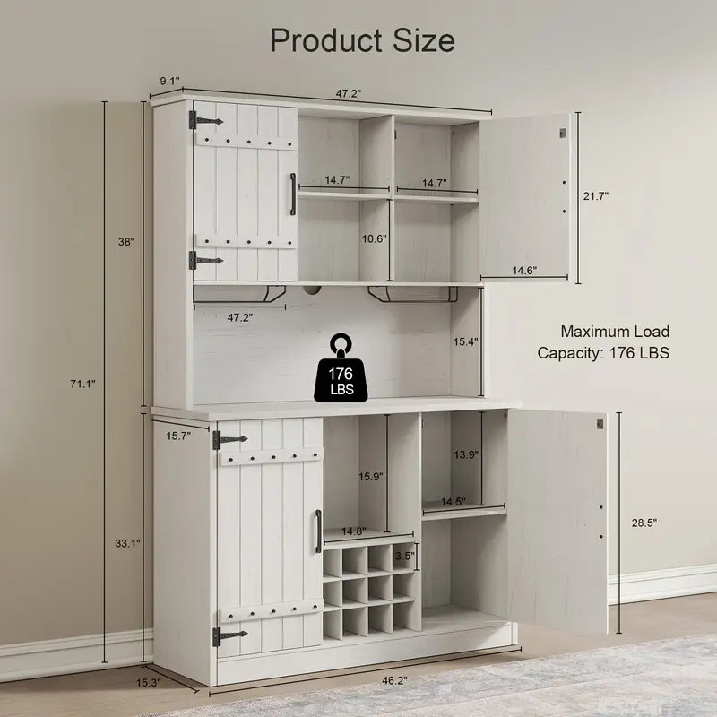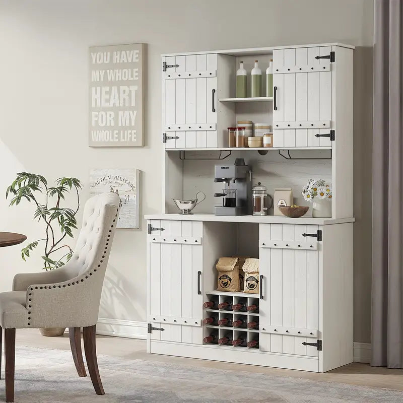 Farmhouse Kitchen Pantry Coffee Bar With Drawers And Wine Rack With Adjustable Shelves