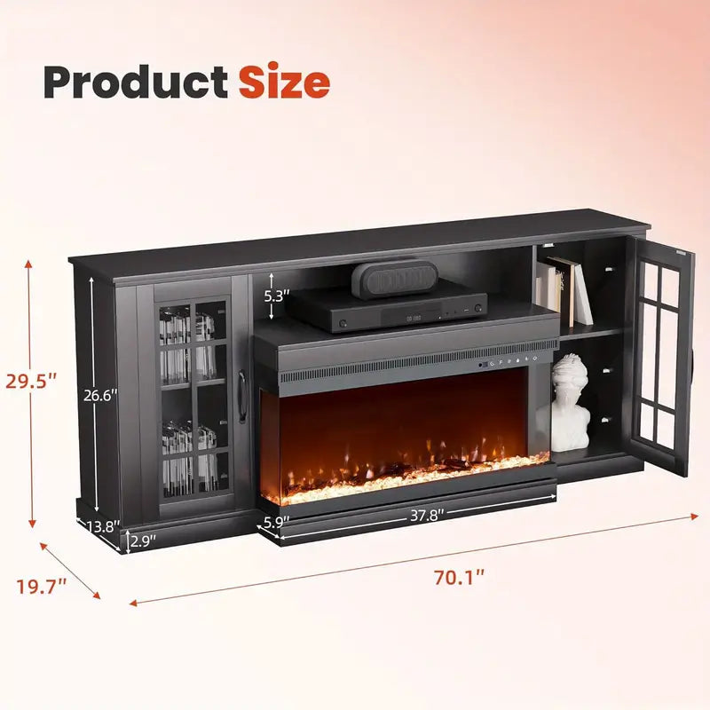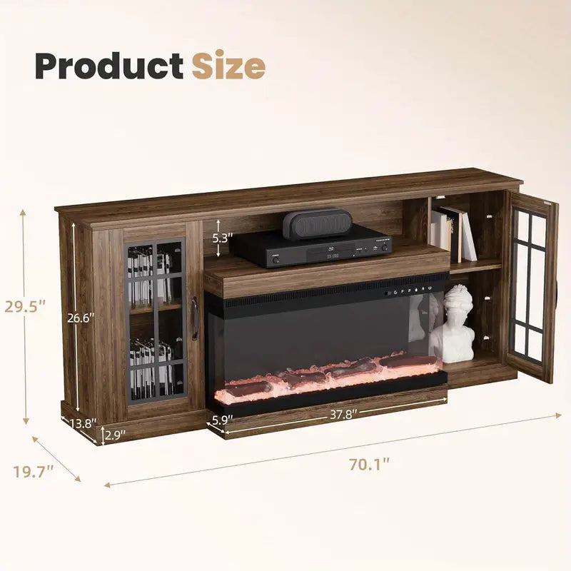 OYEROL 70 Farmhouse Fireplace TV Stand with 36 Electric Fireplace