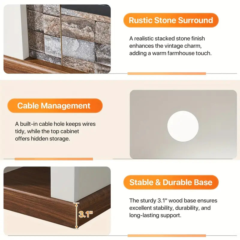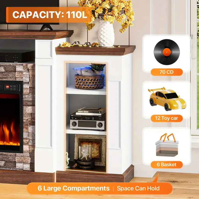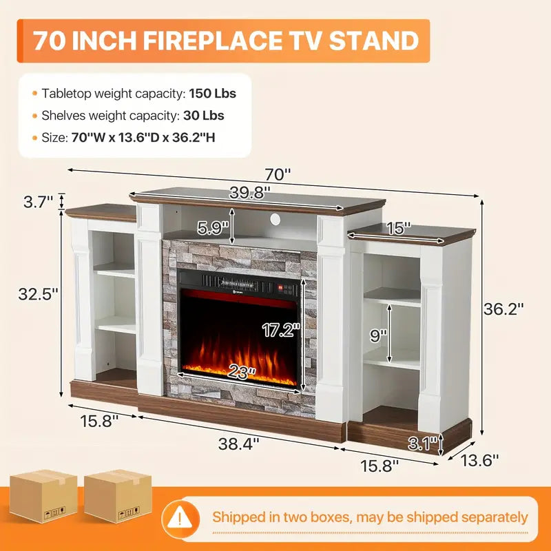 Where modern elegance meets immersive comfort. This 70" Electric Fireplace TV Stand is crafted from premium MDF for enduring strength and a sleek, minimalist profile. Designed to support up to 132 lbs on the tabletop and 33 lbs per shelf, it effortlessly accommodates large-screen TVs, gaming consoles, and streaming devices.